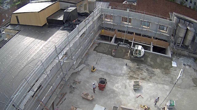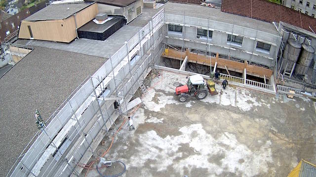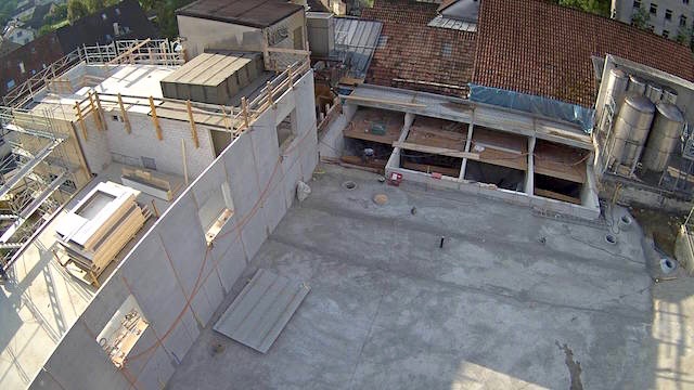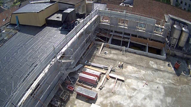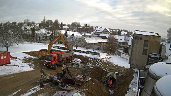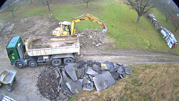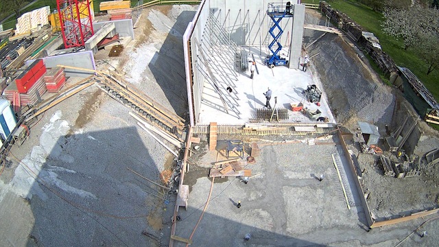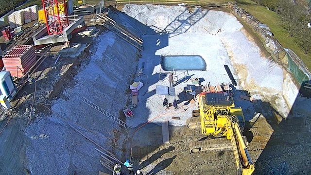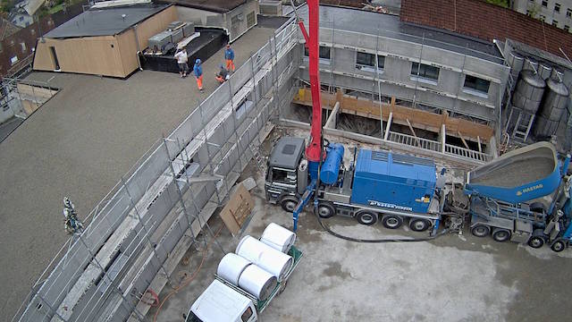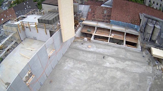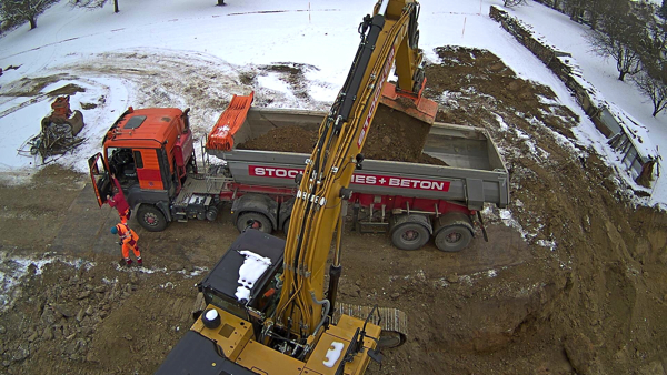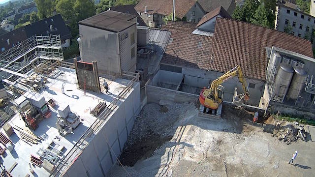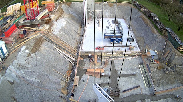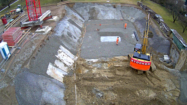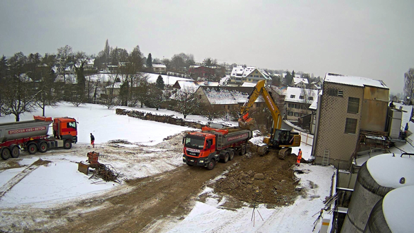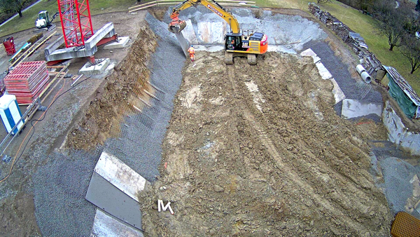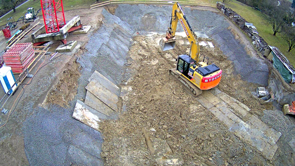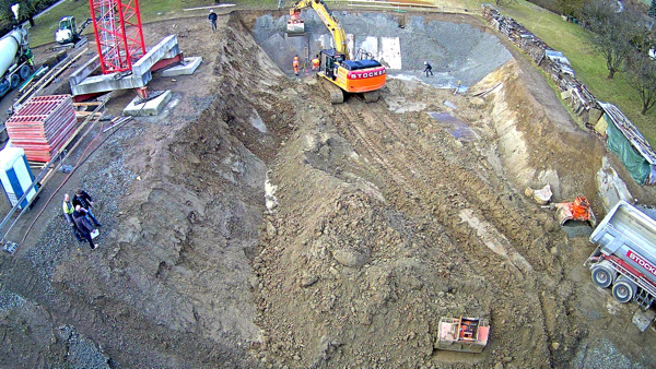 Auf dem Baukran (früher Konzentrieranlage) und bei der Waage wurden je eine Kamera befestigt, um das Baugeschehen hautnah verfolgen zu können!