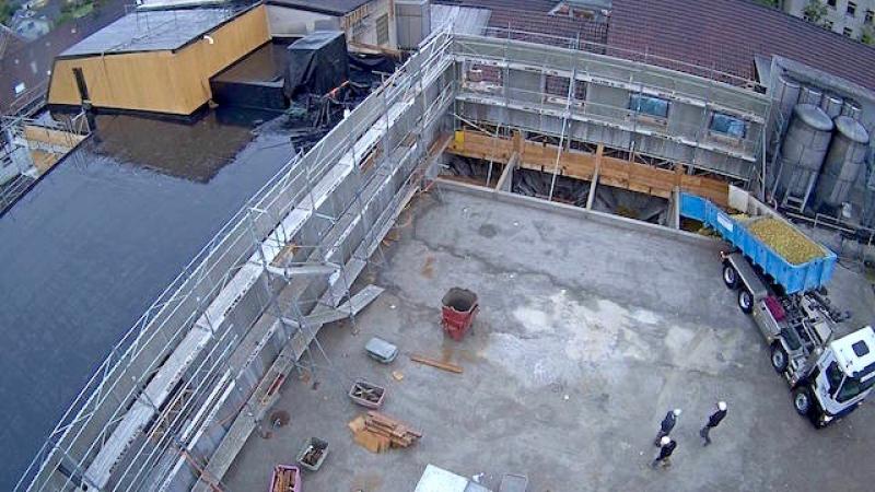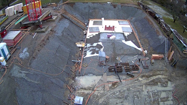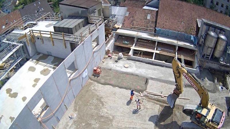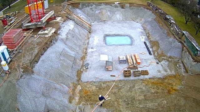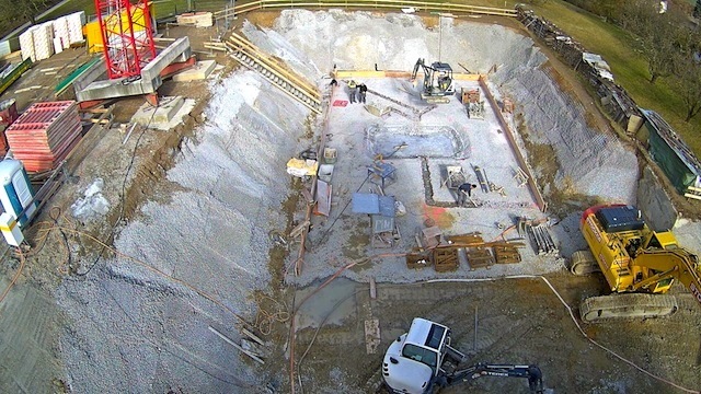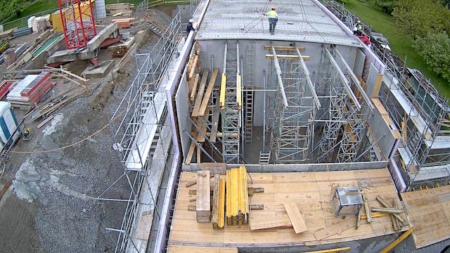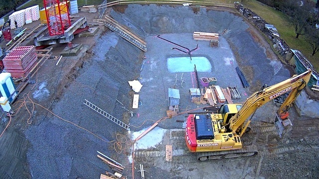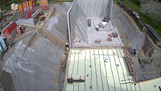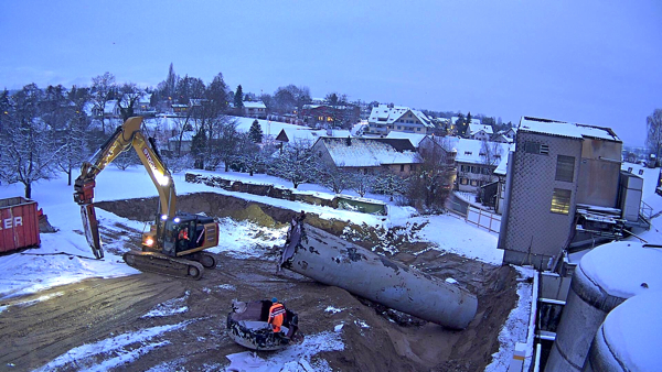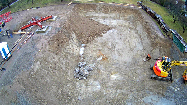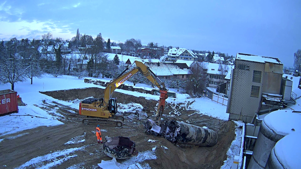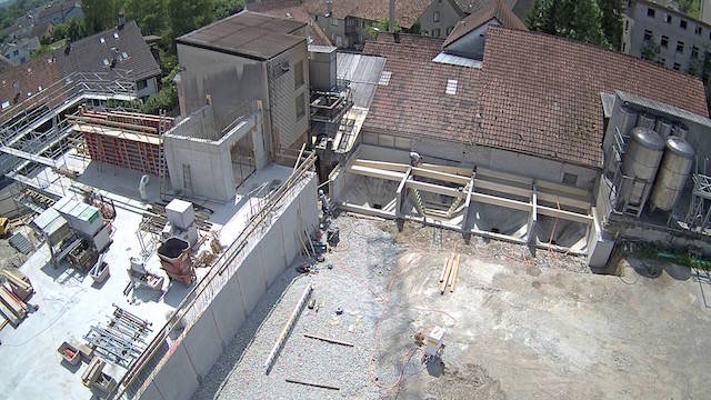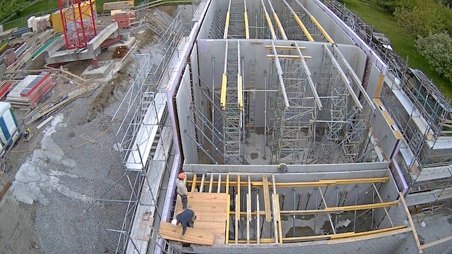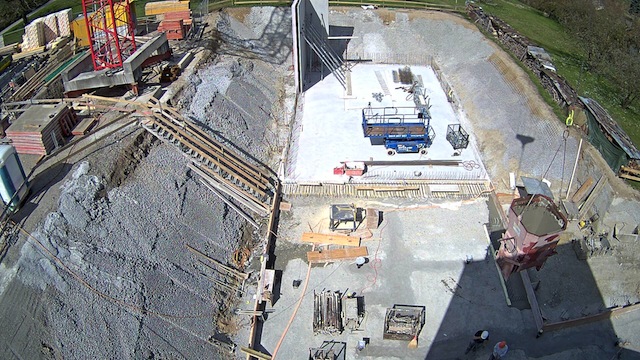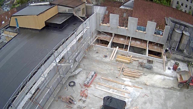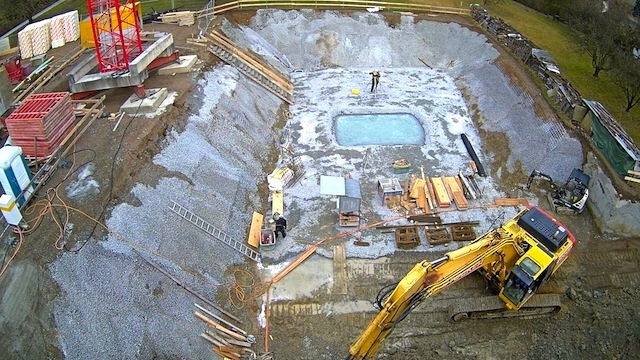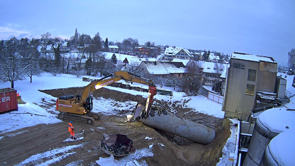 Auf dem Baukran (früher Konzentrieranlage) und bei der Waage wurden je eine Kamera befestigt, um das Baugeschehen hautnah verfolgen zu können!